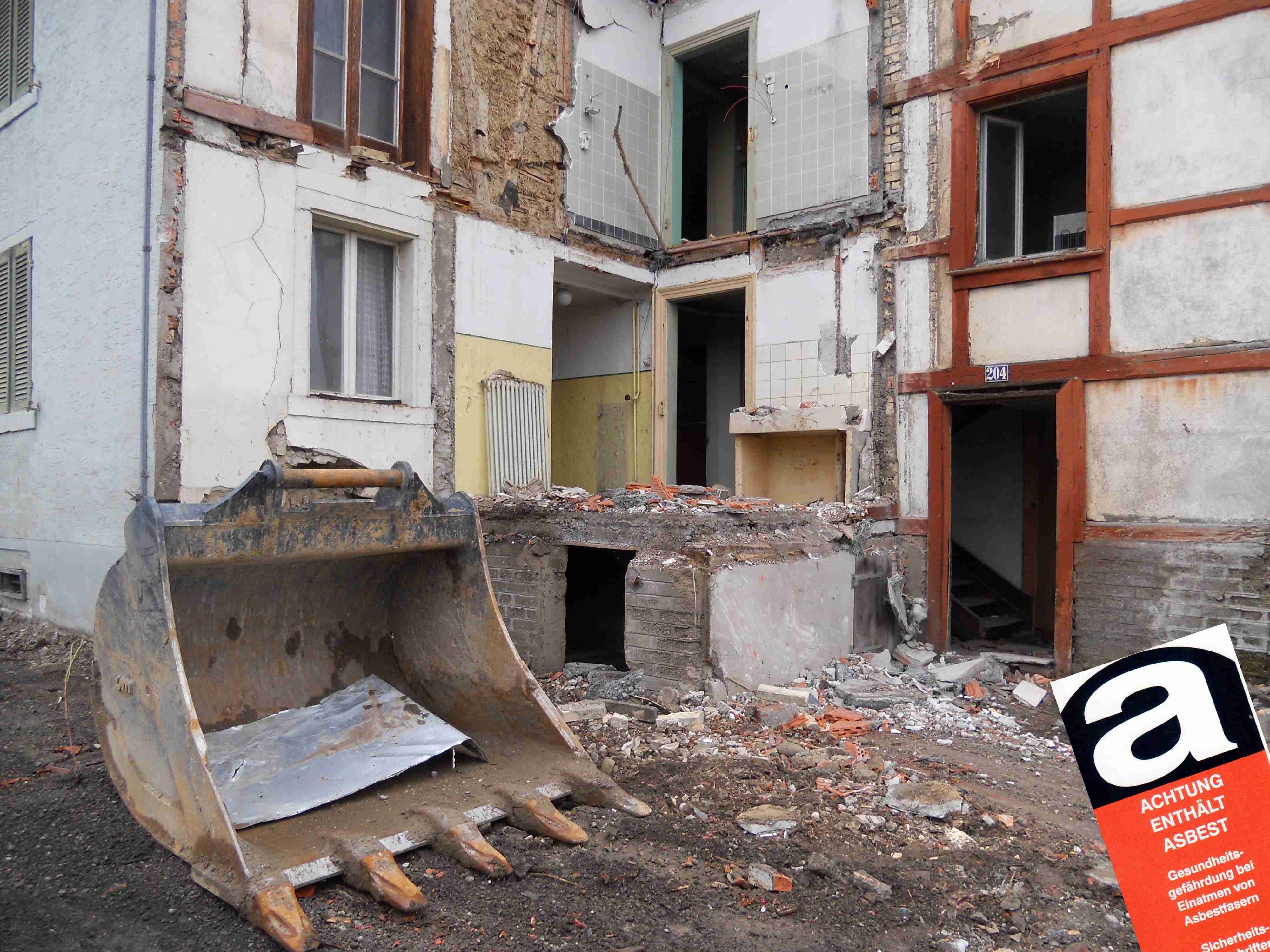 Vor dem Rückbau eines Gebäudes müssen alle Baustoffe untersucht werden, bei denen der Verdacht besteht, dass sie Schadstoffe enthalten.